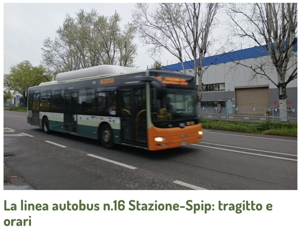 La linea 16 parte dalla stazione di Parma, percorre via Europa, arriva al casello autostradale, entra in via Colorno e quindi nello Spip. Il percorso è diretto e molto rapido.